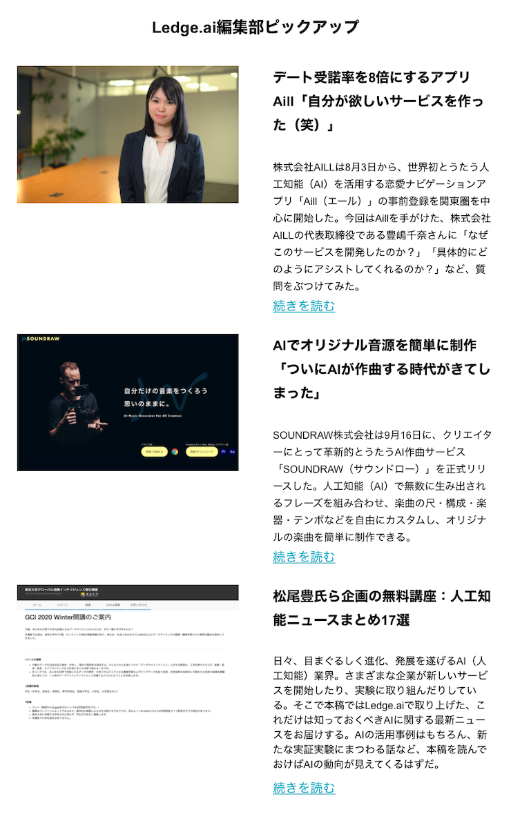 「Ledge.ai編集部ピックアップ」は最新記事をセレクト!