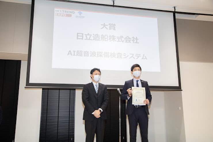 数ある企業のなかから、大賞に輝いたのは日立造船株式会社だった。同社はプラントや発電所などに使われる、熱交換器の損傷を検査するためのシステム「AI超音波探傷検査システム」を手がけている。