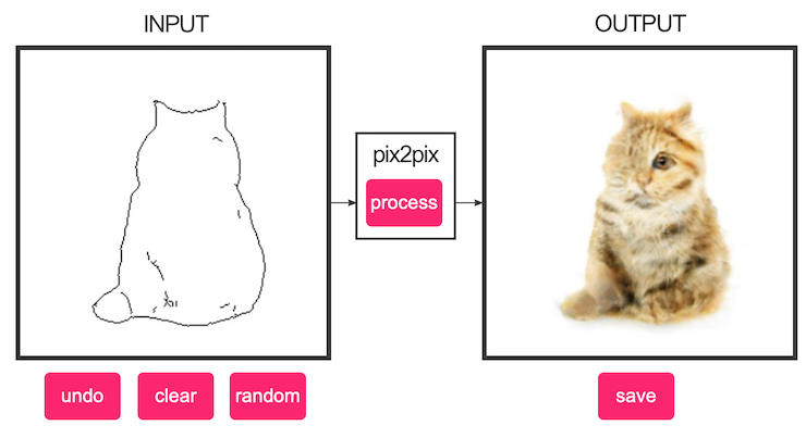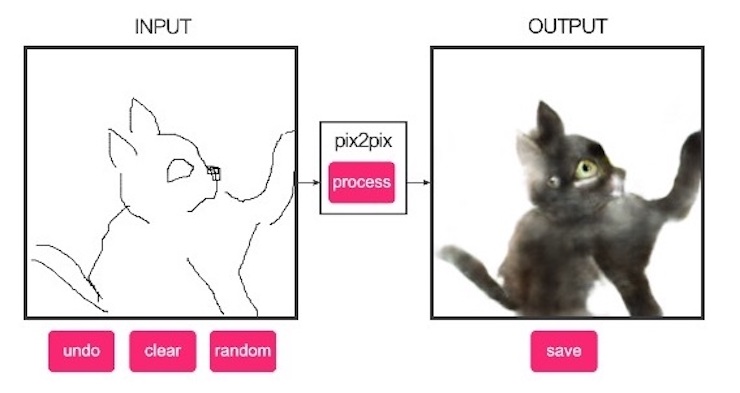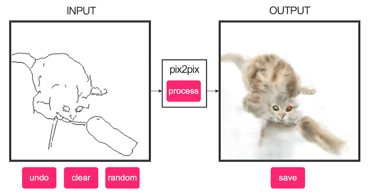「Edges2cats」は、グーグル(Google)によるオープンソースの機械学習ライブラリ「Tensorflow」および、画像生成モデル「pix2pix」を活用しているという。公式サイトによると、約2000枚の猫の写真を使ってトレーニングしているとのこと。なお、使用環境はGoogle Chromeを推奨している。
